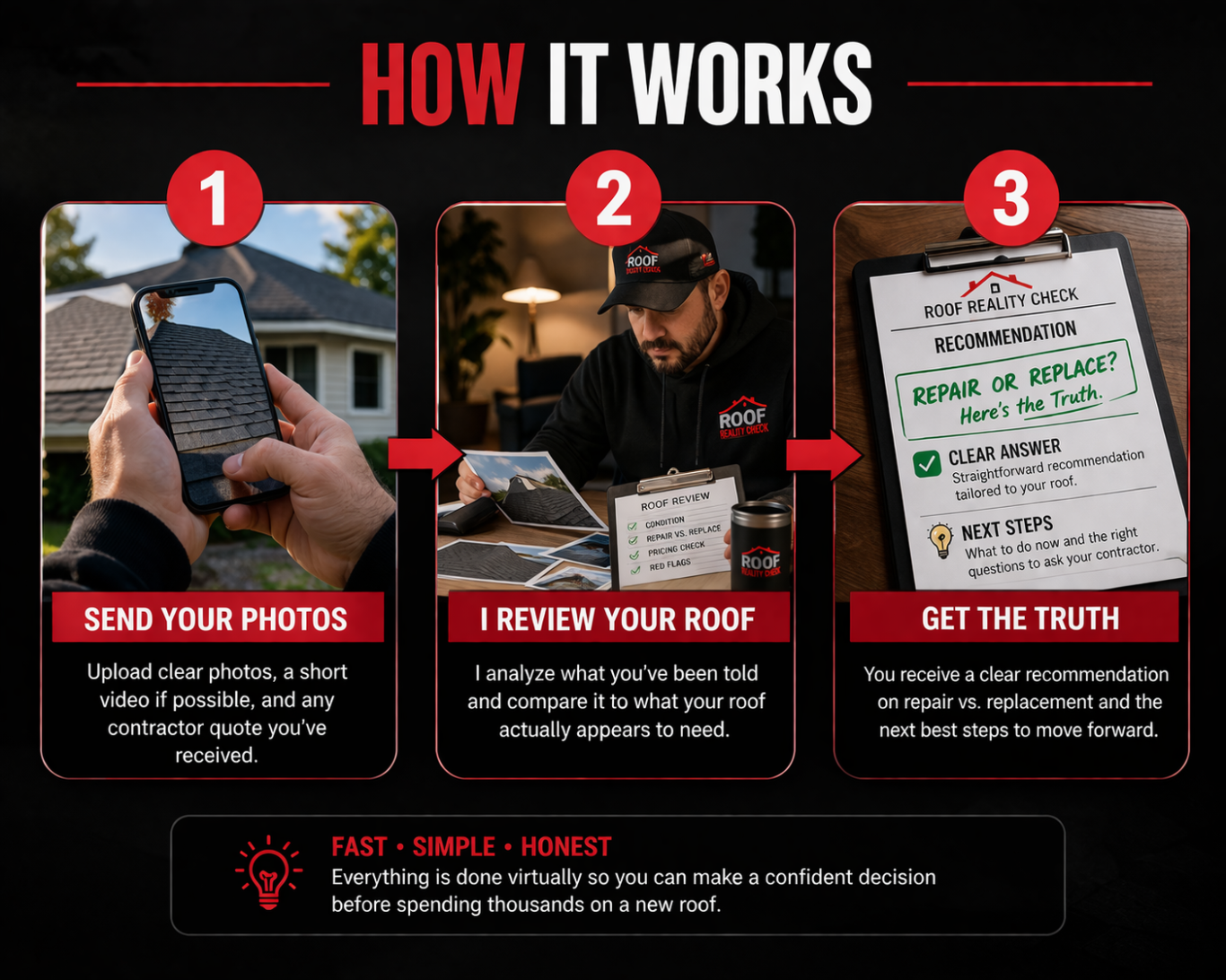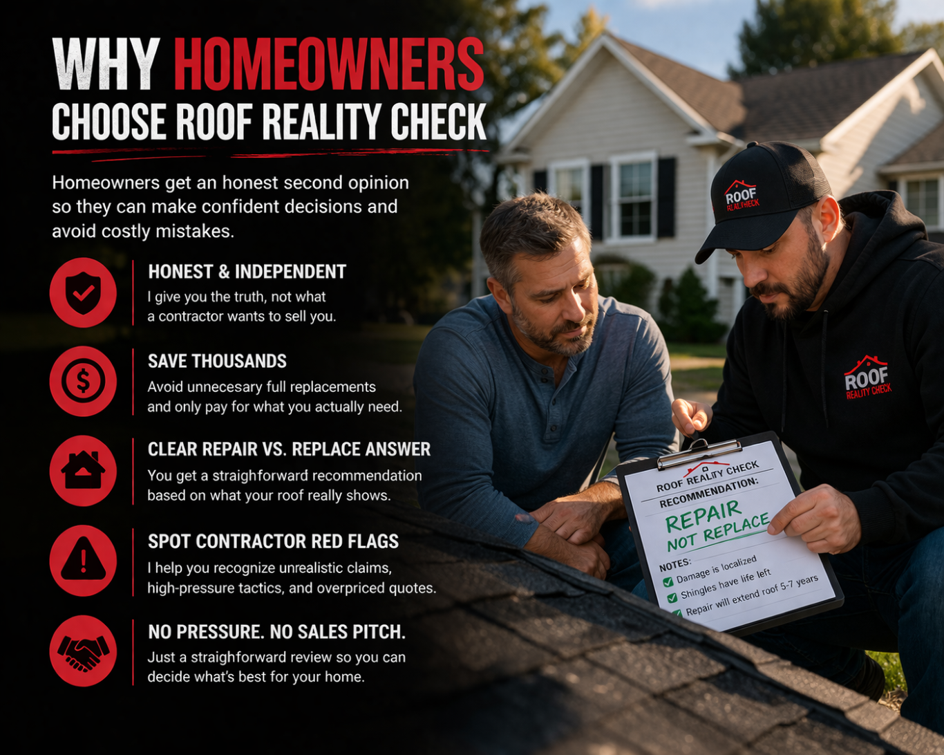 Roof Reality Check helps homeowners understand whether they truly need a roof replacement, whether a repair may be enough, and whether a contractor’s recommendation makes sense.